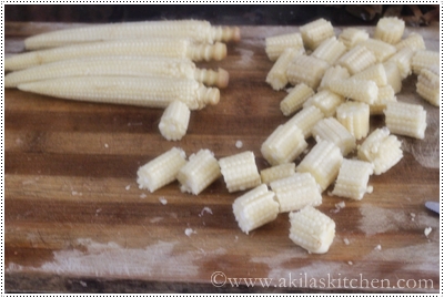 1. If the baby corn is small, you can avoid soaking in hot water and just add them directly to batter and fry it. If the baby corn are bigger than regular size, then I may suggest you to pressure cook for 1 whistle and then prepare as mentioned.