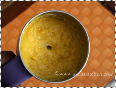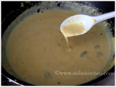 8. Add the ground paste and mix nicely. Care to be taken, that it might get stick to the bottom and the sides of the pan. Keep on stirring gently.