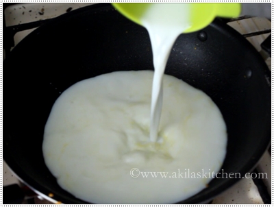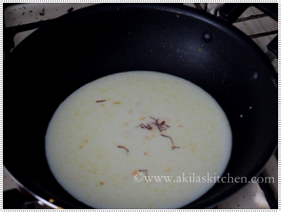 7. In the same pan, add milk and add the saffron. Allow to boil.