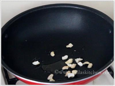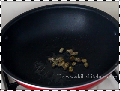 3. When it is hot add the cashews, fry till golden brown and keep it separately. In the same pan, add the raisins, fry it and keep it separately.