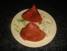 4. Now make dosa or small pancakes with this batter..kids who does not like beetroot will love this recipe as the pink color is appealing to them.