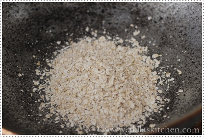 1. Dry fry the oats for 3 to 4 min, until they become light brown in color.
