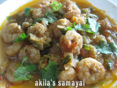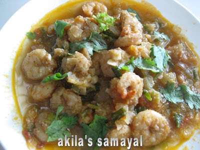 I bought prawns today and thought of trying a new dish with it. While searching in NTUC (a super market in singapore) i bought knorr tom yam cubes. In its back side, they gave the recipe and tried it out. I simply love tom yam and with this prawns the dish came really very nice.